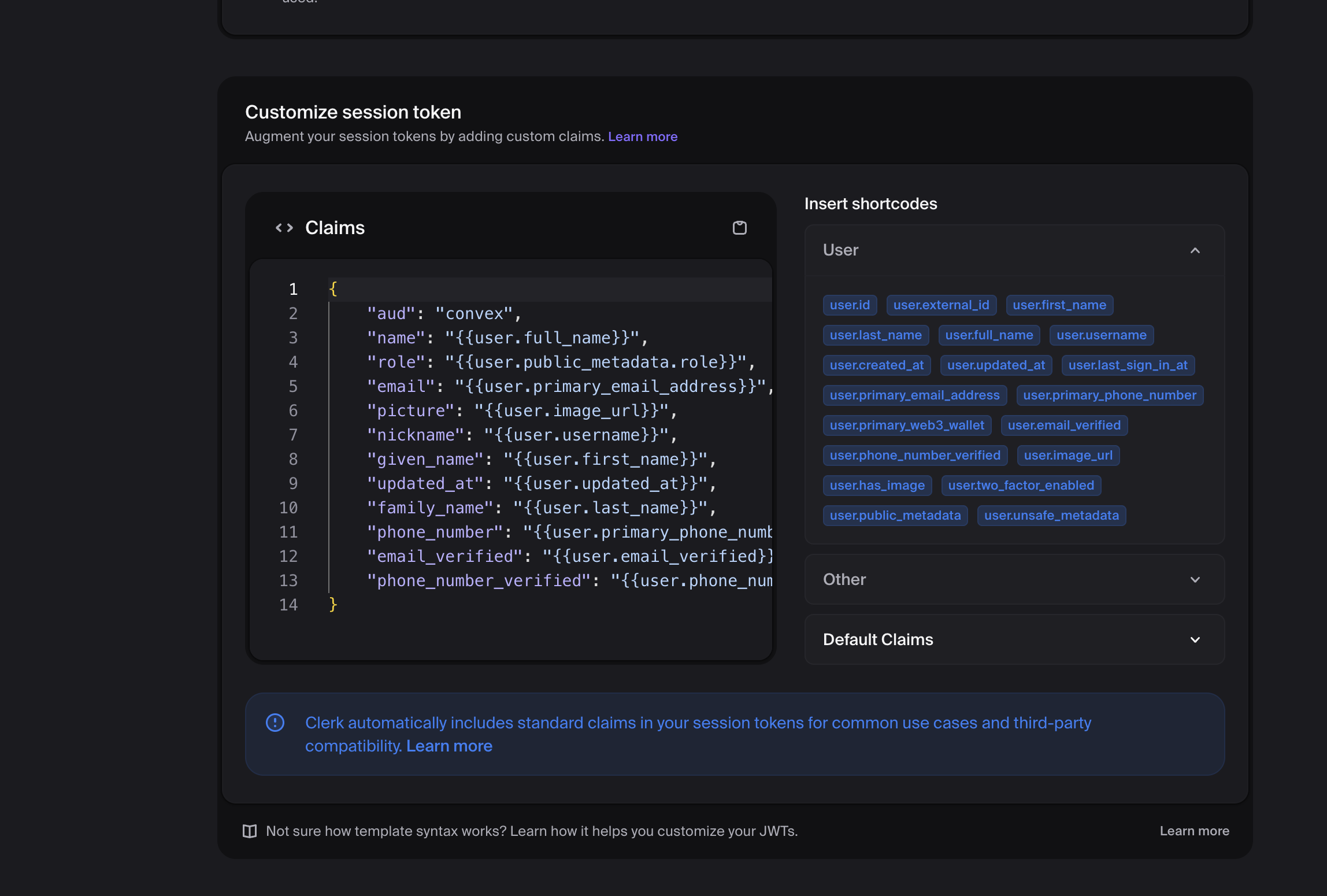 }Hit /debug in development. You'll see exactly what Clerk sent — org_id, org_role, audience, everything. If a claim is missing or null, the issue is almost always: