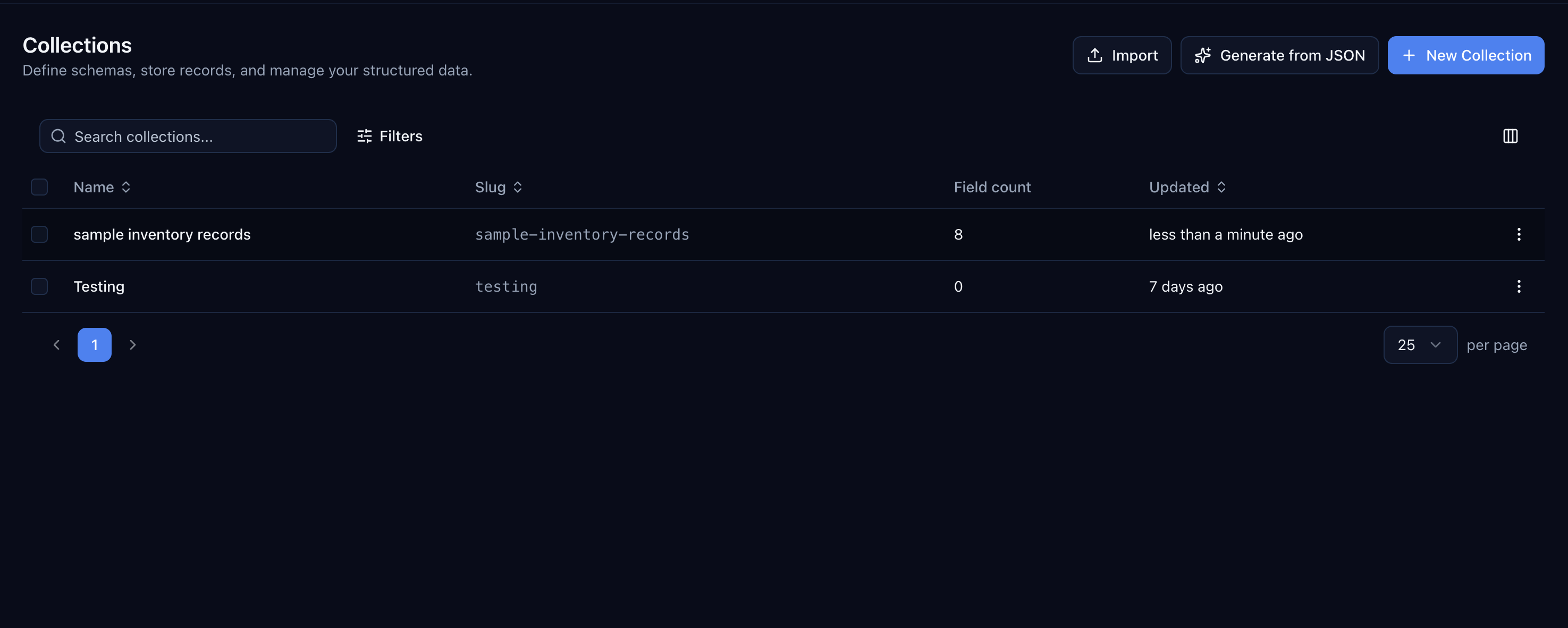 The new collection appears in your list immediately, fully queryable through the API and ready for functions, triggers, and pages.